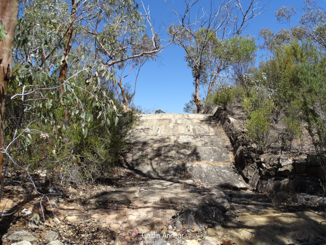 Now a small campsite, this area was once one of many catchment areas dotting the edges of the railway, forming a chain of essential water supplies for the old steam engines that travelled from Perth to Kalgoorlie. It was built at some point in the 1890’s along with the railway. Large granite slabs and smaller rocks were used to channel water from the higher ground behind into a lake. For a great deal of time before this, the granite rocks provided a good deal of gnammas for Aboriginals.