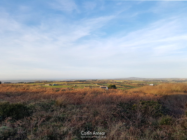 A more westerly view looks towards Carn Brea, another popular walking spot. If you squint a bit you can see Carn Brea castle (now a restaurant) and the granite Basset monument, built in 1836 as a tribute to Francis Basset.