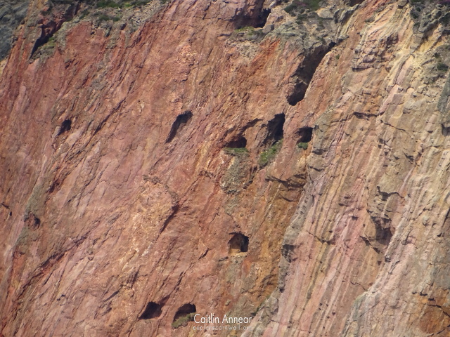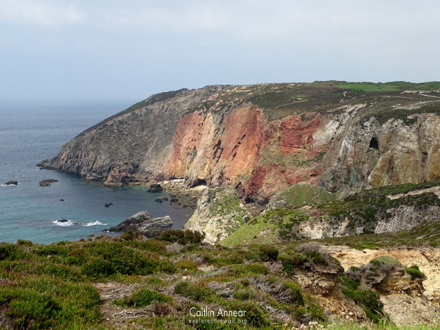 The Cligga Head mine sits on the coastpath between St Agnes and Perranporth and is characterised by the ruinous remains of 20th century buildings and the striking red stained cliffs.