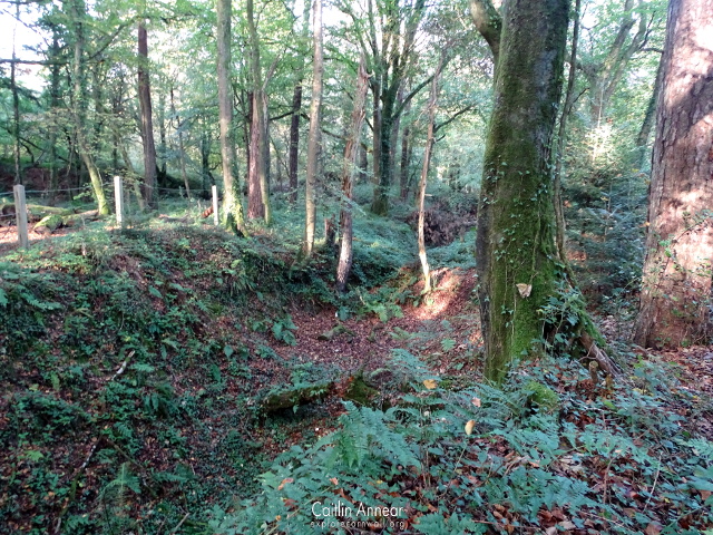Just north of Godolphin Cross and across the road from the main house is the scant remains of some old workings. Hidden in the woods are dips, ditches and overgrown shafts, the only remains of Godolphin Mine.