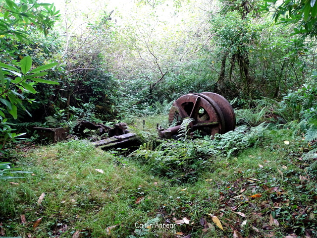 There are several features from the original mine still hanging around, although many have been incorporated into the Wheal Martyn cafe and shop. The front entrance of the museum was once the mines workshops, kin pan, linhay, settling tanks, furnace room and its chimney still stands. The only engine house was built in 1878 for a 22 or 24″ rotative engine which would have pumped slurry. Its former boiler house and chimney haven’t survived. Closer to the museum is the scant remains of a whim engine; this would have been a wooden building with a galvanised roof, with only the machinery scattered around the site remaining today.