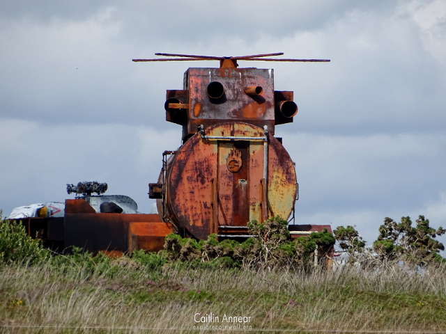 We stopped for a quick lunch on a grassy stretch before heading on towards Kynance. On the way we spotted the derelict aircraft that dot the outside of Predannack Airfield. Built originally in 1941 as a satellite for RAF Portreath it’s now used by RNAS Culdrose for training purposes. We utilised one of the public footpaths off the main coastpath to get a closer look at the old aircraft.