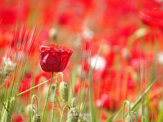The fields of poppies are specially cultivated along with marigold to allow a safe haven for wild flowers, birds and even hares.