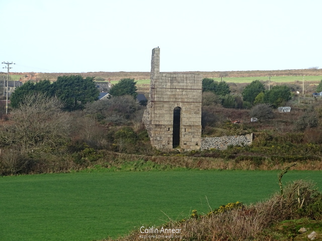 While only the engine house remains, the mine previously had a substantial number of other buildings. In front of the house, to the east was a balance bob housing while to the west was a capstan. On the western side of the engine sat its very large boiler house which held two boilers, with another building on the eastern side, potentially a miners dry. Two tramways ran alongside the north and south of the site – one of these went to Old Skip shaft while the other went to the stamps in Carnkie. Maps show that on the northern side of the house used to lie a complex arsenic works including calciners, flues, labyrinth and a chimney while on the southern side of the road used to sit a winding engine house.
