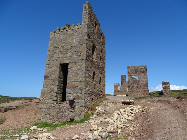The prominent feature at the top of the cliff is the 24″ dual whim and stamps that sits right on top of the cliff. This was built in 1872 and drove 32 heads of stamps as well as winding from Towanroath shaft below. The engine stopped working in 1887, although it was modified during the 1910-1914 reworking. It was consolidated in 1986.